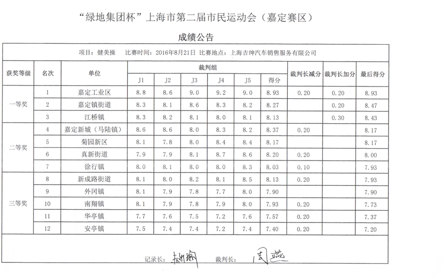 青岛亚洲国际体操节选拔赛暨全国全民健身操舞大赛(上海)暨“绿地集团杯”上海市第二届市民运动会健身操大赛(嘉定赛区)