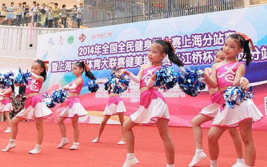 2014年上海市民体育大联赛健身操大赛总决赛暨长宁区学生健身操比赛日前在上海国际体操中心举行,共有来自全市各区县、高校及行业协会等80多家单位的110多支优秀健身操队参加。