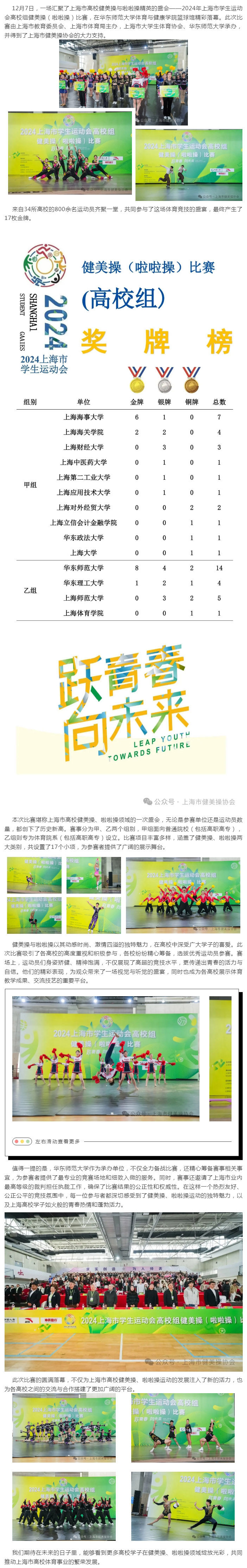 赛事回顾《四》丨2024年上海市学生运动会高校组健美操(啦啦操)比赛圆满收官